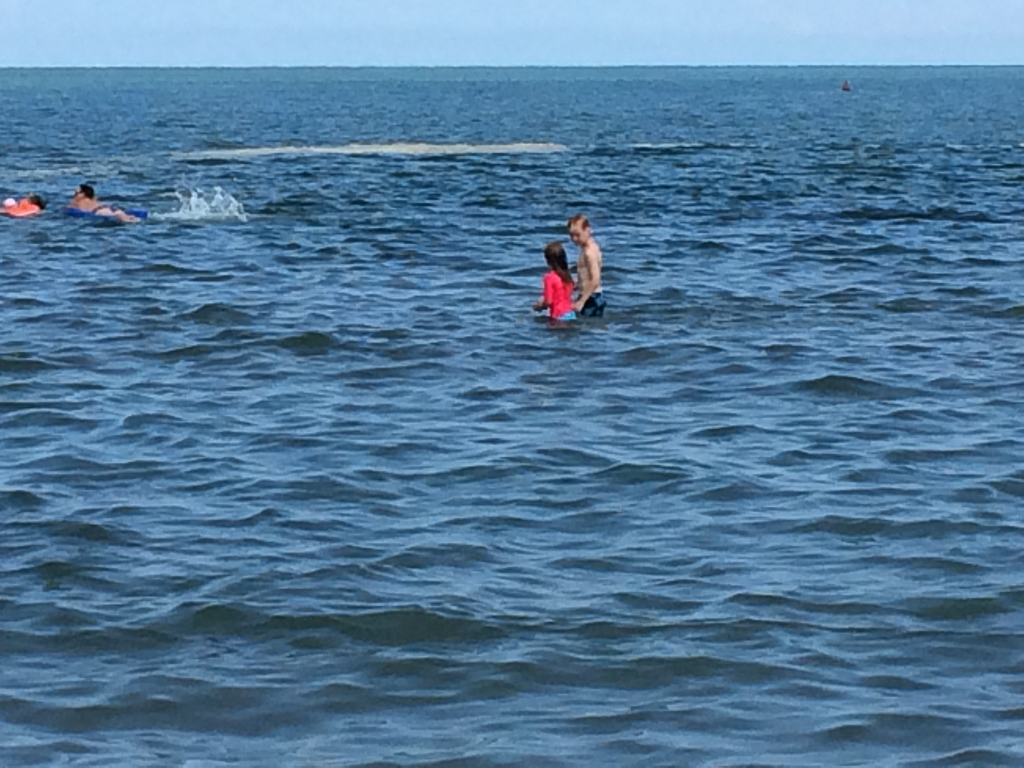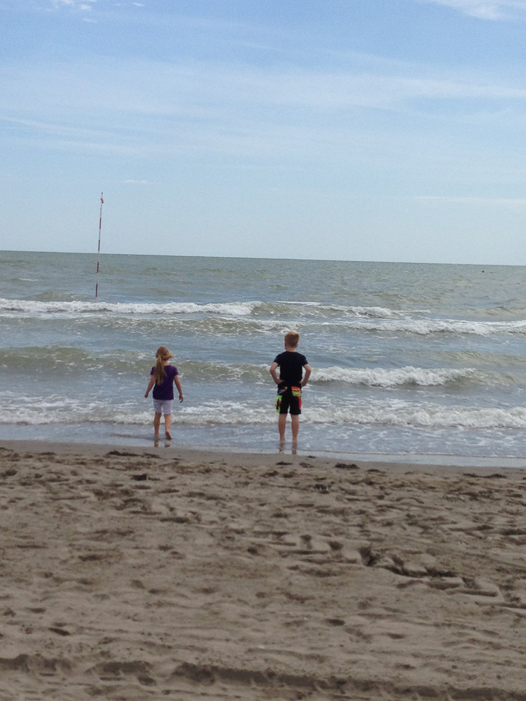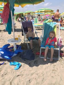 genießen. Philipp ging es schon wieder sichtlich besser und er war auch schon wieder zu Scherzen aufgelegt. Also ab zum Strand zur ersten Baderunde. Trotz seiner zahlreiche Wunden im Gesicht und Knie stürzte sich Philipp gleich zusammen mit Luisa und sie war ein Fluten der Adria. Das Salzwasser brannte zwar in den Wunden aber unser Sohn war wirklich sehr, sehr tapfer. So fand der Tag doch noch ein schönen versöhnlichen Abschluss.