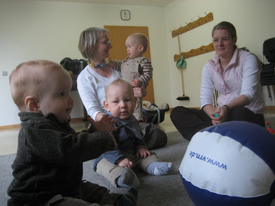 Heute war ich wieder in Erbach beim Krabbeltreff und habe mit Arne und Jan gespielt. Das hat soviel Spaß gemacht, daß ich vor lauter Freude in die Hände geklatscht habe. Das Sitzen klappt jetzt schon echt gut und man gewinnt ganz neue Eindrücke aus der Perspektive.
