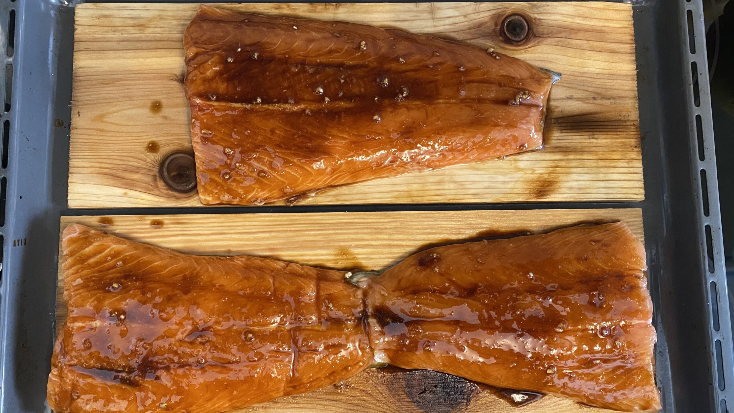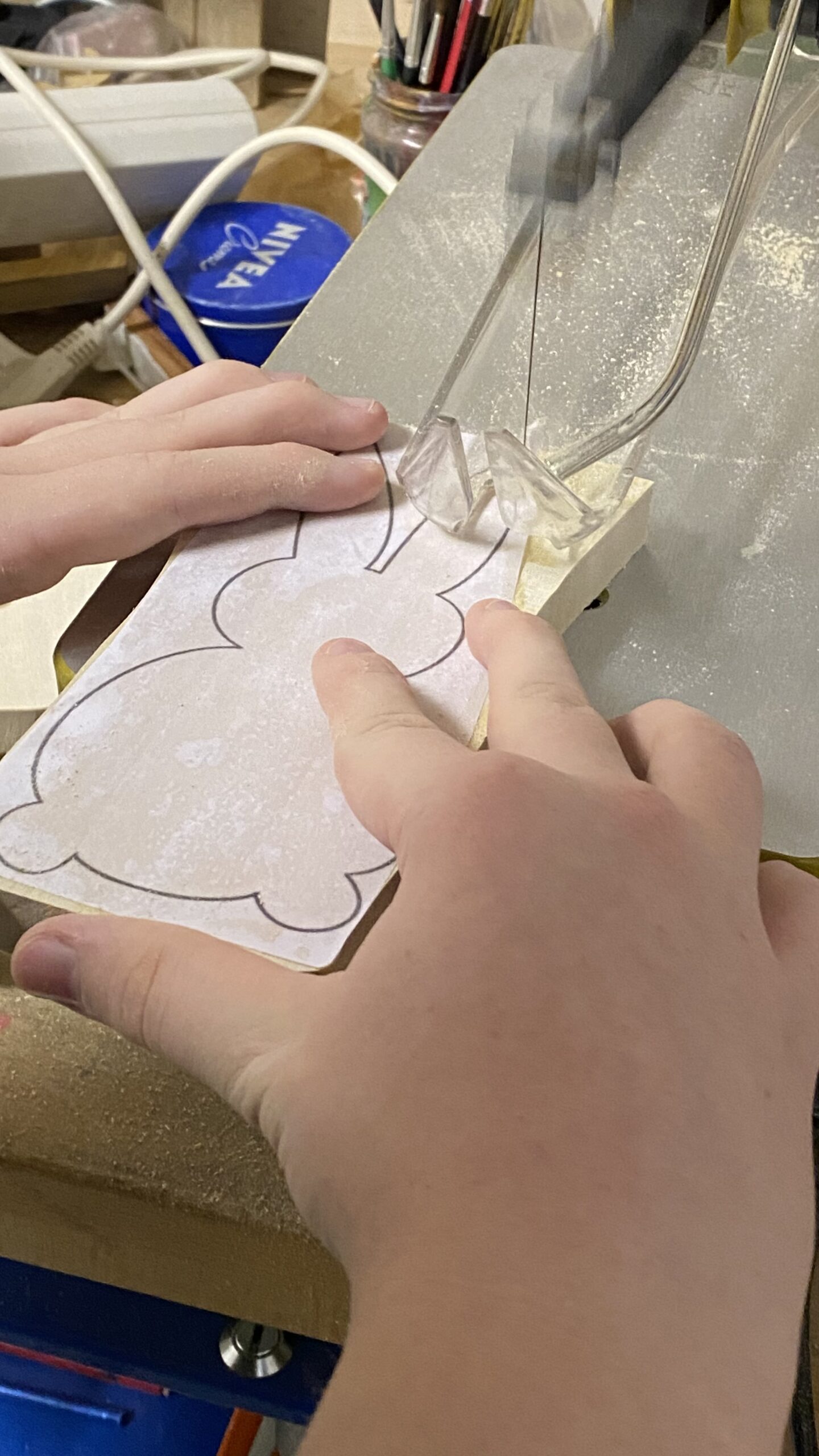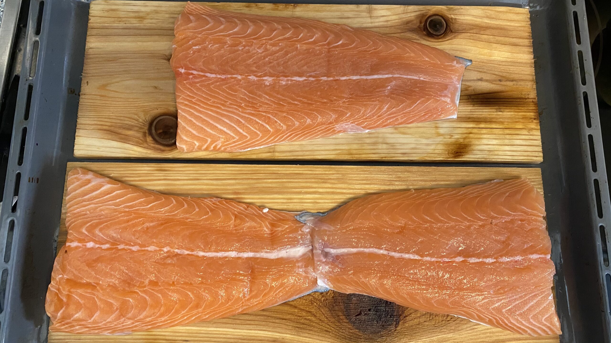 Wieder Zuhause ging es dann ans Mittagessen vorbereiten. . Es gab Lachs auf Zedernholz, Wedges und Salat. Währen Chrissi und ich das Essen vorbereiteten, stand Philipp im Keller an der Dekupiersäge um einen „Großauftrag“ von Mama Chrissi auszuführen – Osterhasen aussägen. Man muss neidlos anerkennen, dass Philipp hier wirklich Talent hat und das Ergebnis sich wirklich sehen lassen kann.