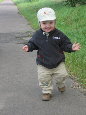 Der Papa hat noch Kirmesurlaub und ist mit mir spazieren gegangen – ohne die Mama – denn die ist heute müde – obwohl der Papa doch gestern gefeiert hat…. Was solls – es macht auf jeden Fall tierischen Spaß, in der Landschaft rumzurennen und sich vom Papa wieder zurückholen zu lassen, wenn man ganz plötzlich vom Weg abgekommen ist. Ich mußte auch mal in den Kinderwagen, weil ich nicht gemacht hab, was der Papa gesagt hat… denn verstehen tu ich es ja…