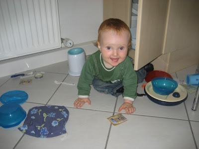 Wenn es auf einmal sehr ruhig wird in der Küche, kann es unter Umständen soooo aussehen. Vorteil: Er ist ne halbe Stunde beschäftigt und ruhig 🙂