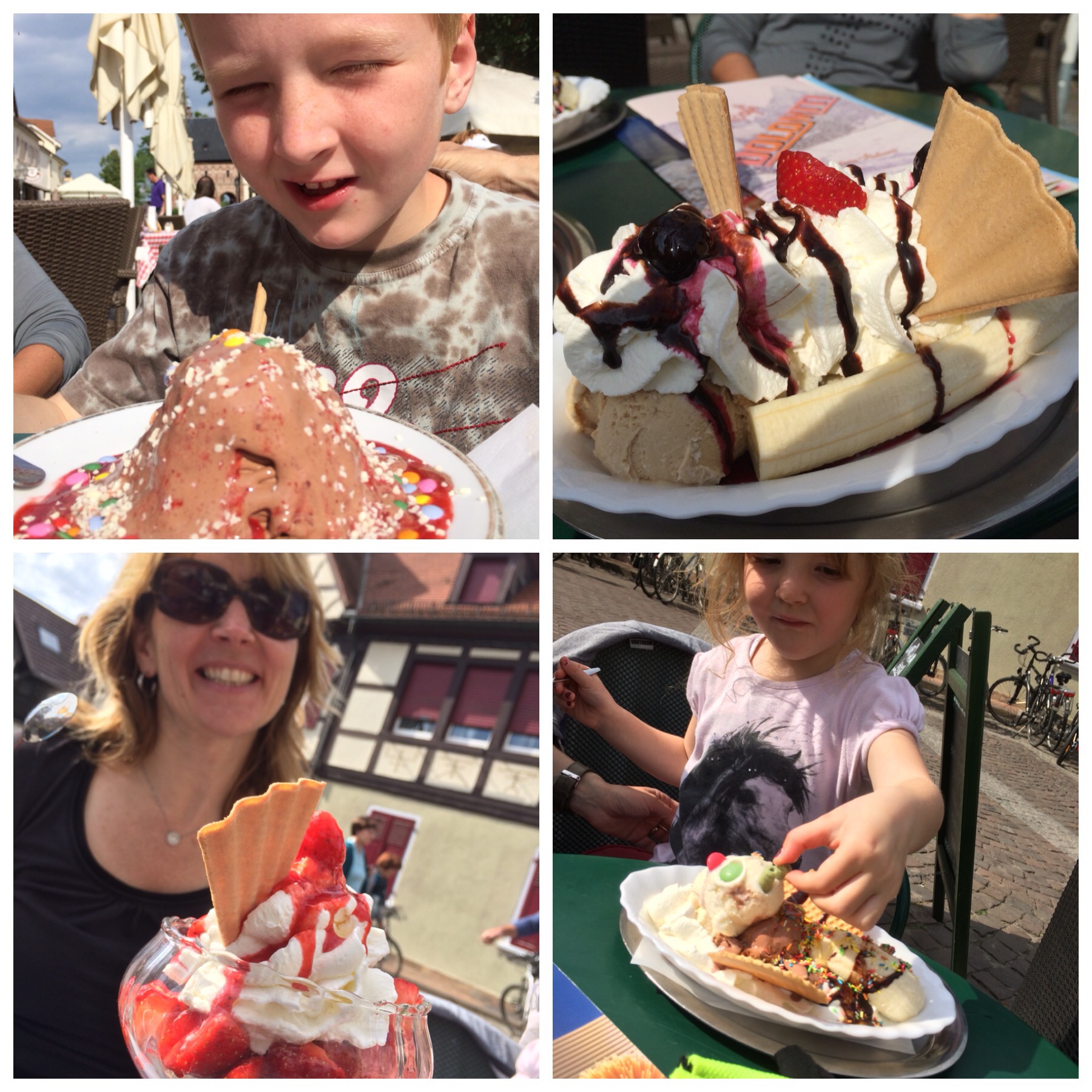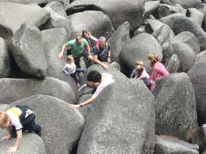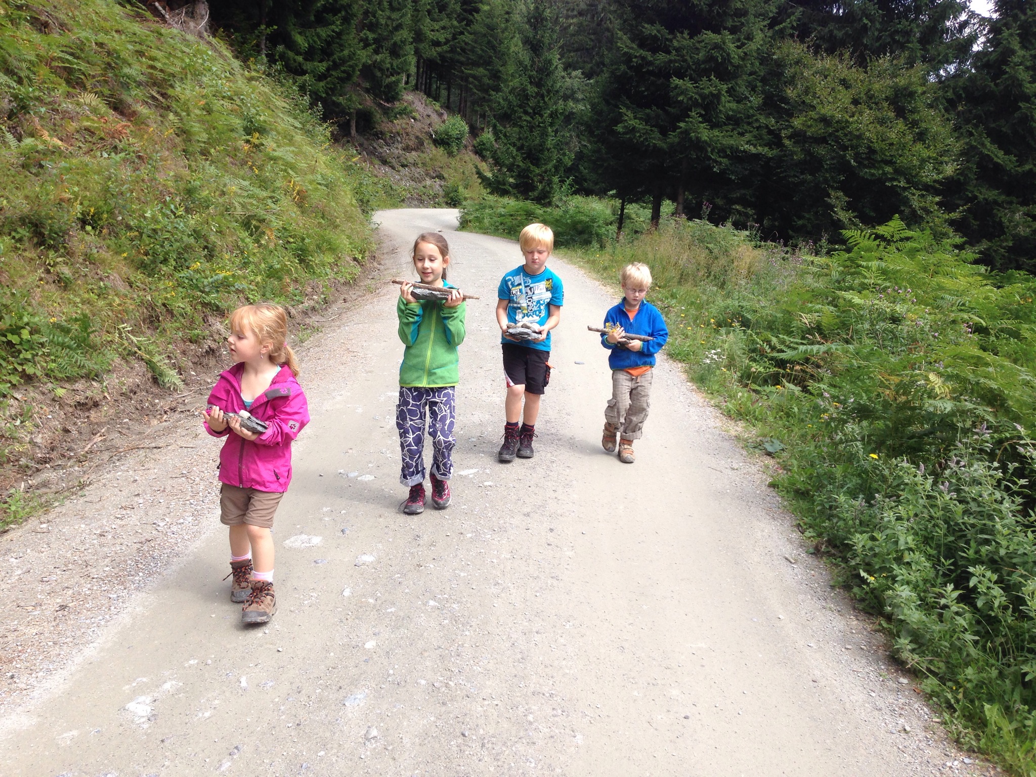 Gut gestärkt ging es dann wieder an den Abstieg. Dieses mal blieben wir aber die meiste Zeit auf den Wegen und nur das letzte Stück ging es wieder über die Felsen Richtung Tal. Unten angekommen gab es erst einmal ein leckeres Eis und dann Richtung Spielplatz und das Unglück nahm seinen Lauf. Während wir noch dabei waren das restliche Essen aus unseren Rücksäcken für ein abschließenden Picknick zusammen zu legen, begnügten sich die Kinder schon auf dem Spielplatz und auf der Rutsche im besonderen.