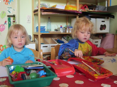 Heute war ihr erster Schnuppertag und wie man auf dem Foto sehen kann, fühlt sie sich schon sichtlich Zuhause. Chrissi musste überhaupt nicht lange im Kindergarten bleiben, Hauptsache Chrissi kommt später wieder vorbei um sie abzuholen.