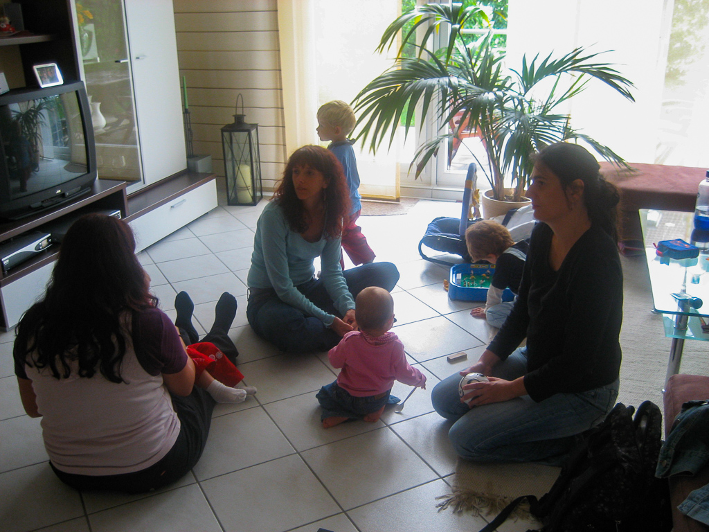 Es ist ja üblich, dass junge Mütter sich zu Krabbelgruppen zusammenschließen, aber zu Frühstücksgruppen ??? Jedenfalls kommt es mir so vor.