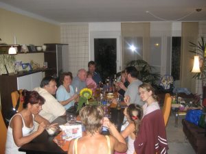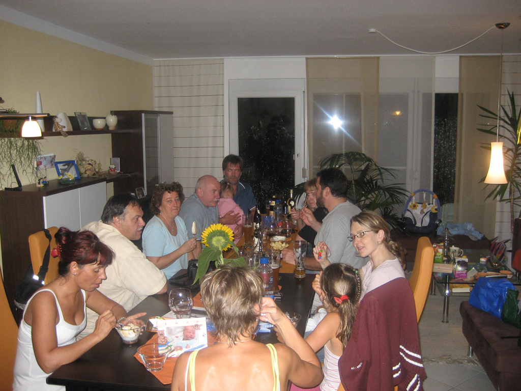 Heute fand das Treffen incl. Familie bei uns in Heppenheim statt. Wollten doch alle mal Philipp live erleben. Geplant war ein schöner Abend auf der Terrasse bei Fackelschein und leckeren gegrillten Genüssen. Geendet hat er im Wohnzimmer bei Halogenlicht und regnerischen Ergüssen. Zum Glück waren wir gerade mit dem Grillen fertig, bevor das Unwetter losbrach. Aber zusammengerückt im Wohnzimmer wurde es gemütlicher und lustiger Abend und Philipp darf bald mit seinem tollen Lego-Zoo mit vielen vielen Tieren spielen!! Da freut sich die Mama auch schon drauf 😉
