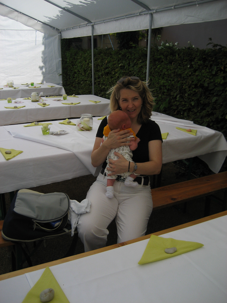 Heute feierte Chrissis Patenkind Lea mit ihrer Familie ihren Geburtstag. Und so ging es zur nachtschlafenden Zeit – also 12 Uhr Mittags mit Kind und Kinderwagen Richtung Erbach. Armin hatte schon den Grill angeworfen und es gab leckere Steaks und Bratwürste und für Philipp leckere Muttermilch in Geschmacksrichtung Nudelsalat (siehe Eintrag vom 08. Juli) :-))