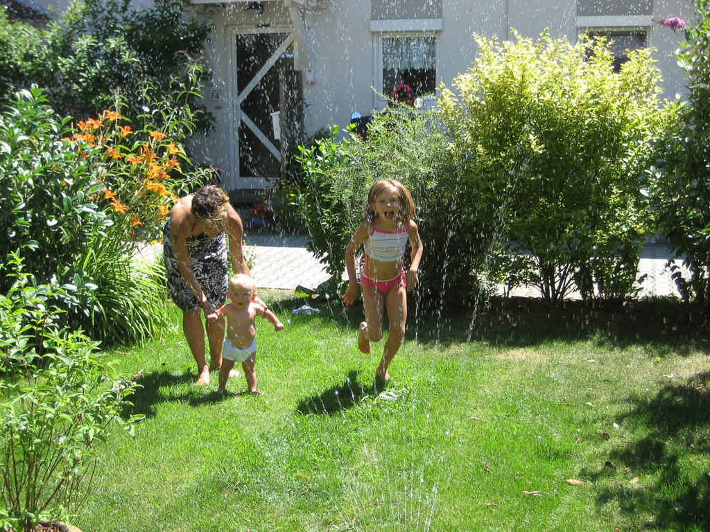 Eröffnet wurde der heutige Besucherreigen von Familie Hänssler. Jörg, Sibylle, Annika und Kim besuchten uns am späten Vormittag. Nach einem gemeinsamen Mittagessen kam dann auch schon der nächste Schwung. Klaus, Tatjana, Melina und Moritz aus meiner „alten“ Heimat gaben sich die Ehre. Leider war es mal wieder so warm, dass selbst das Sitzen auf der Terrasse zu anstrengend war. Da half nur noch der Rasensprenger :-))
