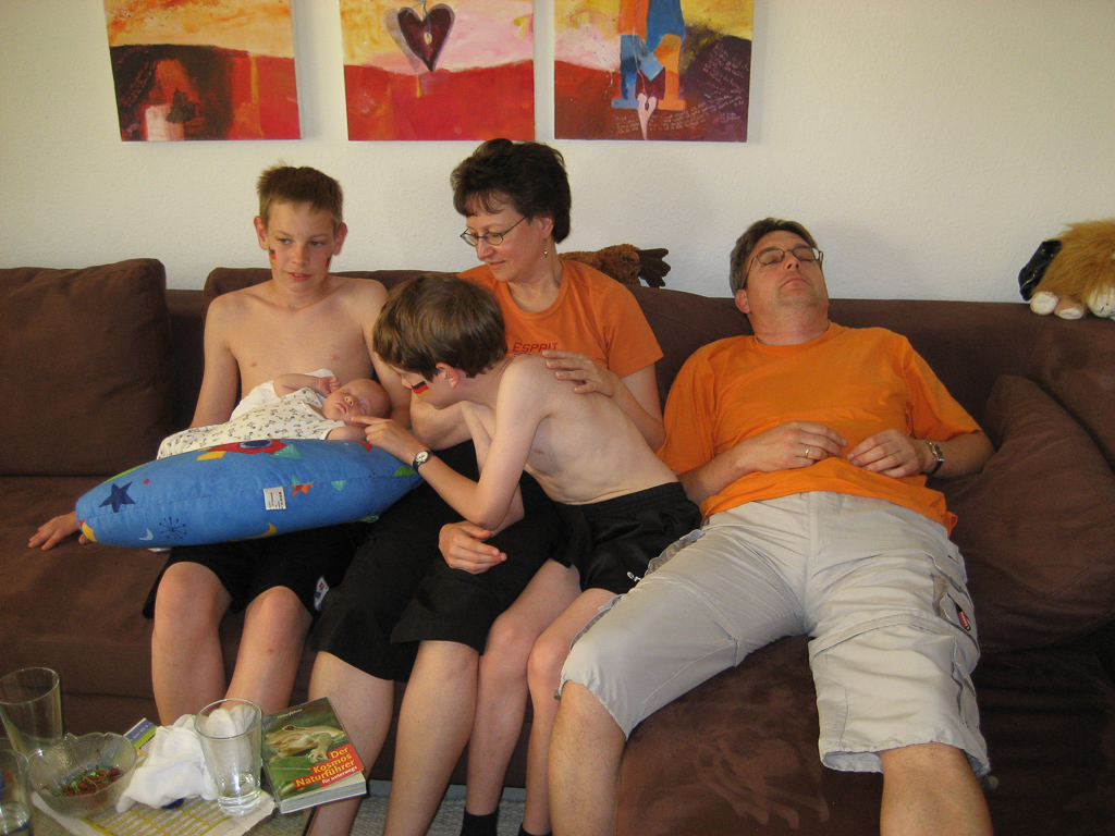 Heute war der bisher anstrengenste Tag für Philipp. Neben der drückenden Schwüle hatte mein Bruder Jürgen und Familie ihren Besuch angekündigt. Natürlich wollten auch sie das neue Familienmitglied persönlich begrüßen – ist ja auch verständlich.