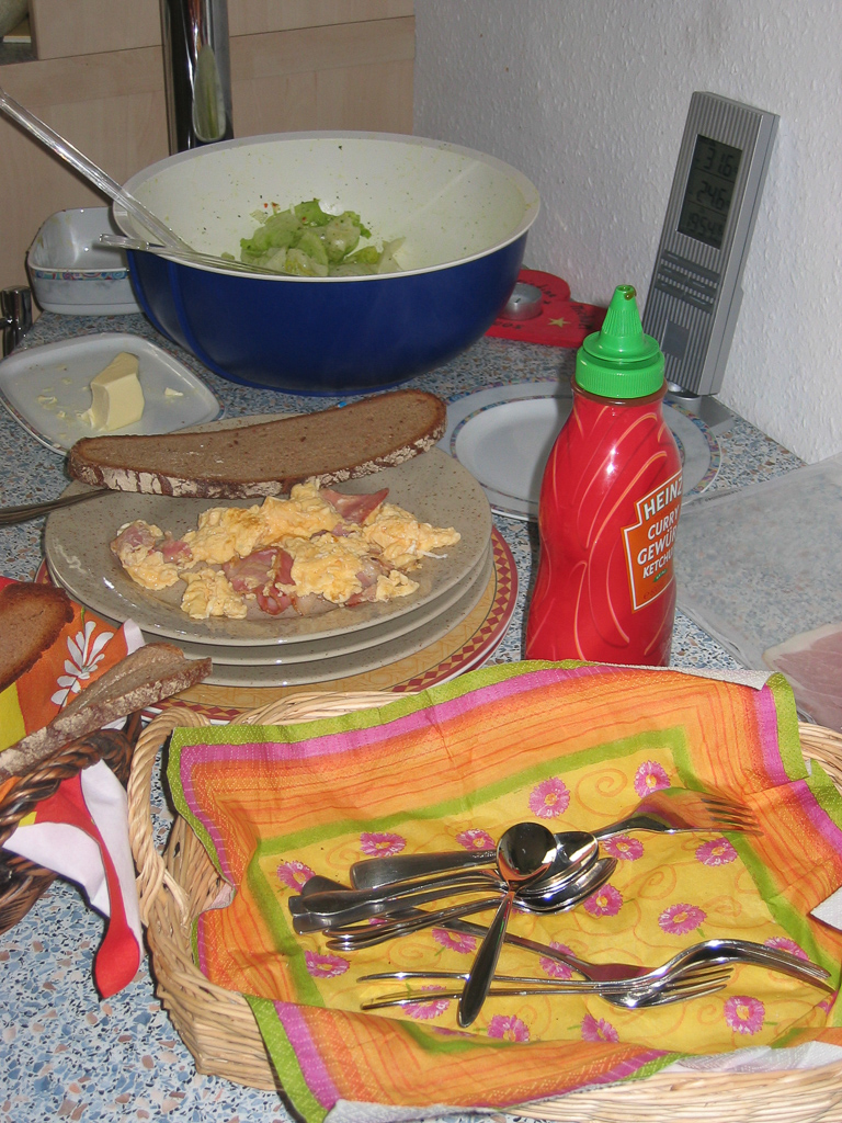 58 Eier, 1 kg Kartoffelsalat, 3 Laib Brot und 3 Kisten Bier später verließen um 2:30 Uhr die letzten Gäste das Haus. Noch kurz aufräumen und um 4 fiel ich dann tot müde ins Bett.