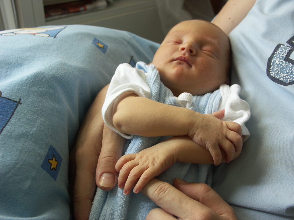 Philipp hat fast den ganzen Tag verschlafen. Nur zum Stillen schulg er kurz die Augen auf, nahm ein paar kräftige Züge aus der „Pulle“ und schlief wieder ein.