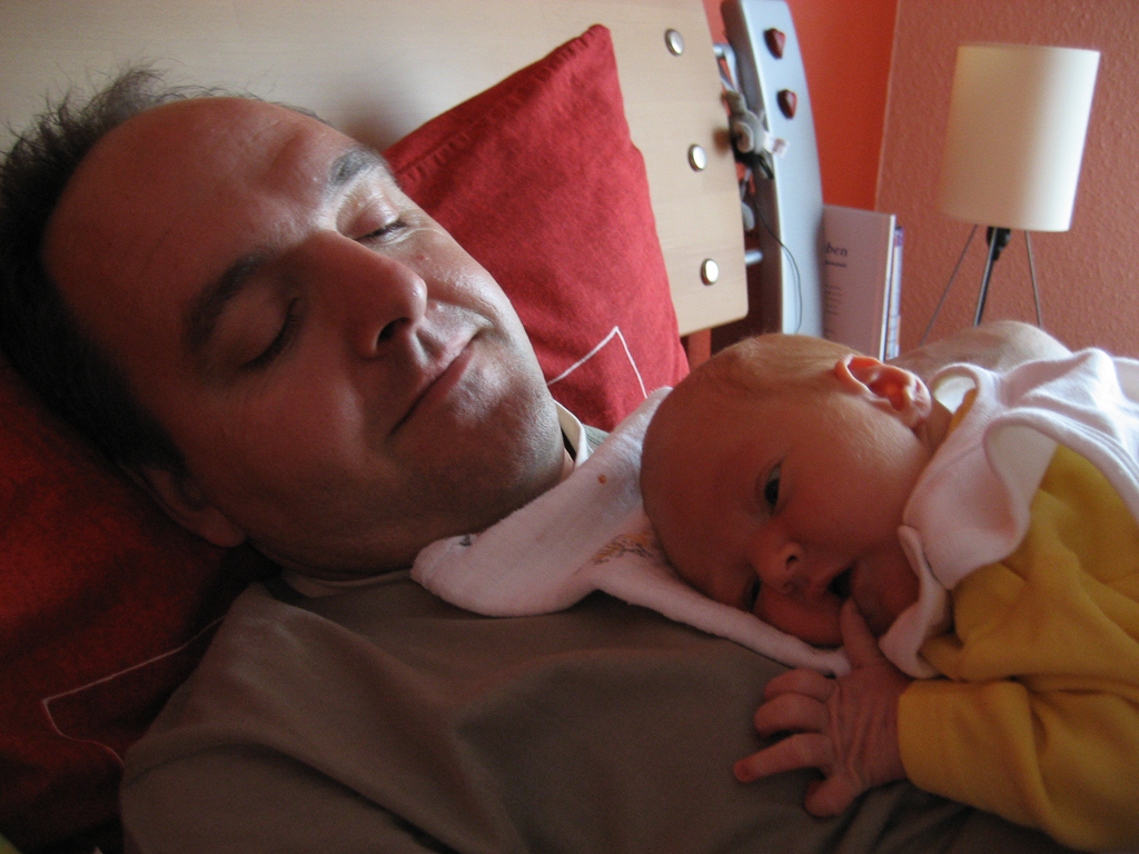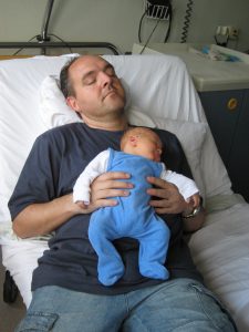 Heute war wieder ein typischer Schlaf(f)- und Eßtag. Schlafen, trinken, schlafen, trinken, wickeln, schlafen … das macht sogar den Papa müde.