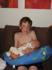 Lukas und Marco wichen den ganzen Tag ihrem Cousin nicht von der Seite. Neugierig wurde alles akribisch genau beobachtet – vom Stillen bis zum Windel wechseln und auch beim Halten von Philipp machten die Beiden eine sehr gute Figur.